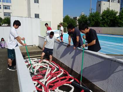 安全面や衛生面を考慮し、プールの内部はもちろんプールサイドや更衣室などの細かいところまで丁寧に清掃と点検を行いました。