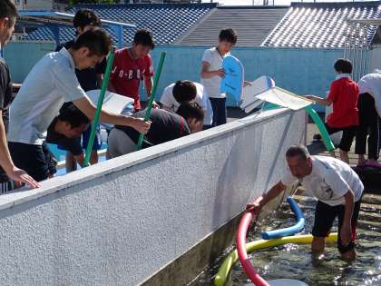 教職員はもちろん、子どもたちにも常に安全を意識させて、水泳授業に臨みます。