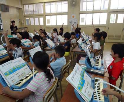 2年生は、鍵盤ハーモニカを使って音楽の授業をしました。
