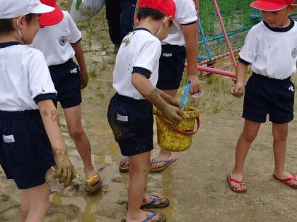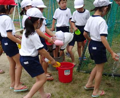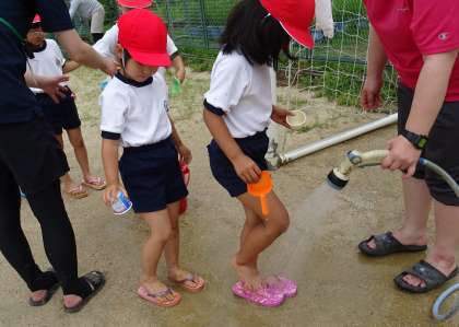 使った道具をきれいに洗って、運動場の土山にお礼を言います。