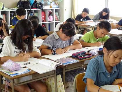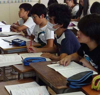 3つに分かれたどの教室でも、子どもたちは集中して学習していました。