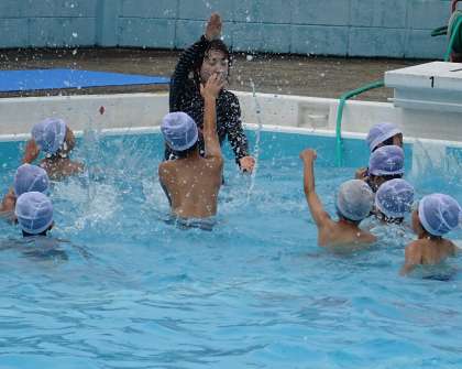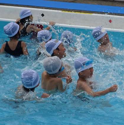 いろんな動物のマネをして、楽しく水とふれあいます。
