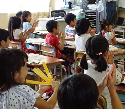 素晴らしい発表があった時や、クラスの全員で目的を達成した時には、教室が大きな拍手に包まれます。
