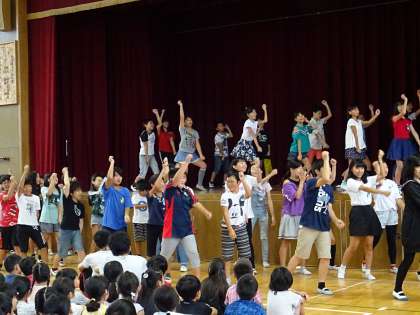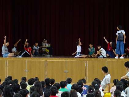 今日は英語集会。6年生のステージ発表は、まるでミュージカルのようでした。