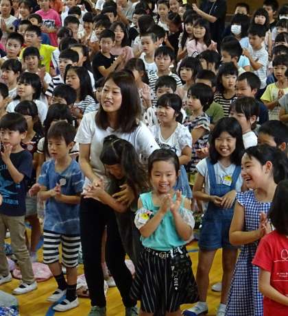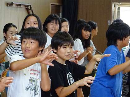 子どもたちは全員立ち上がると、6年生の動きにあわせてノリノリで踊っていました。