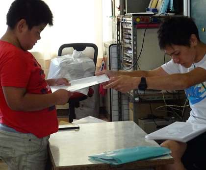 通知表を受け取っている様子です。