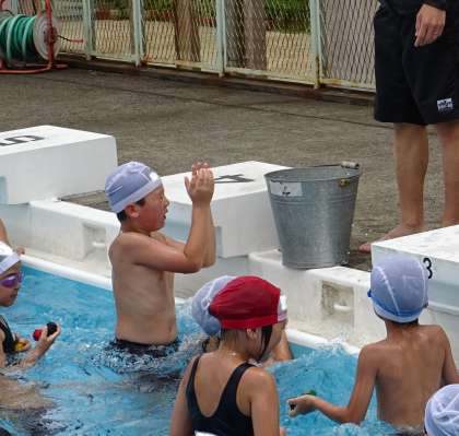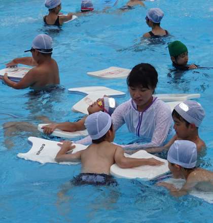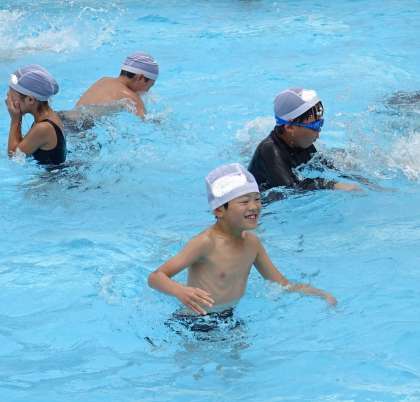 プールで元気に活動する子どもたちの様子です。
