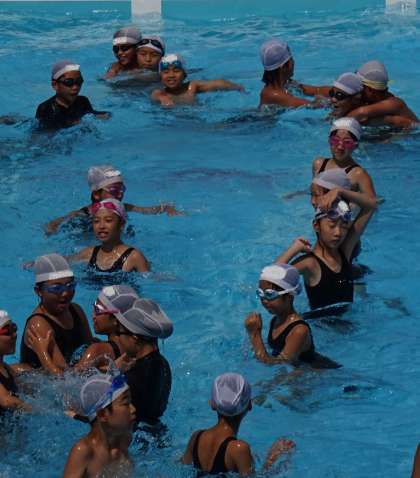 プールで元気に活動する子どもたちの様子です。