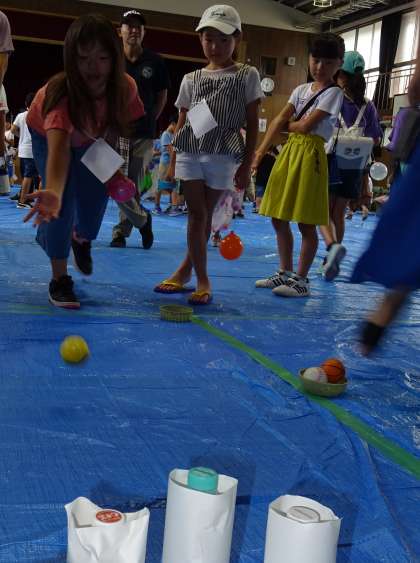 ペットボトルボーリングの様子です。