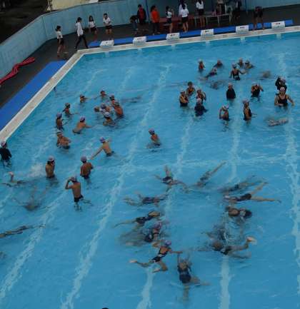 この後、「1・2・3・4…」のかけ声に合わせて、テンポよくリズム水泳をしていました。