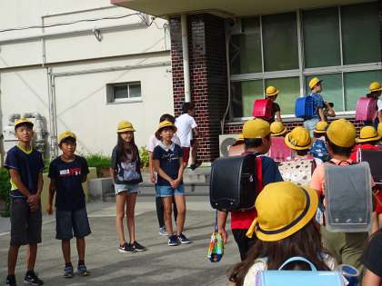 応援団に入団している6年生は、登校すると校門に立ち、朝のあいさつ運動をしています。