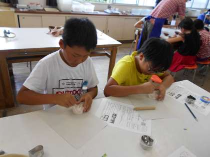 入浴剤を作ったり、手のひらで冷たくなりぶくぶく泡立つことを体感したり。