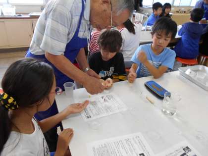 水溶液の性質を学習中の6年生に、楽しい実験の授業をしていただきました。
