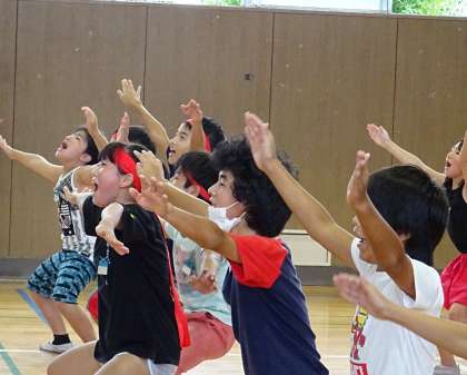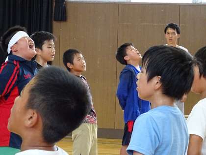 応援団の練習を見ている1年生から3年生の中には、「自分も大きくなったら応援団に入るんだ」と心に決めている子もいます。