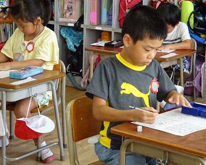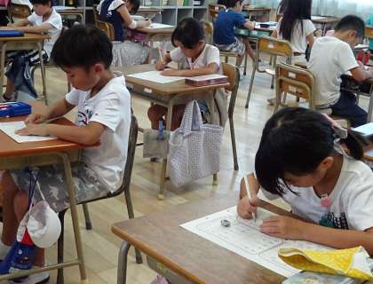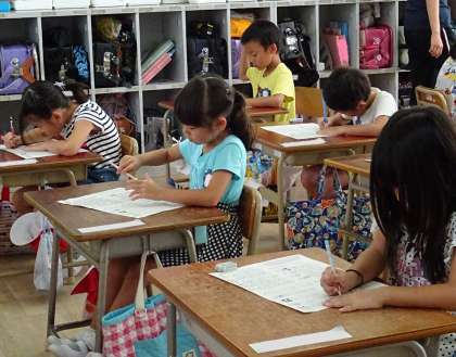 1学期、漢字王に輝いた子も、惜しくも満点を逃しリベンジに燃える子も、この日のために漢字を練習してきました。