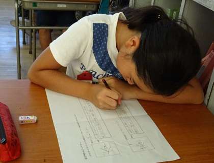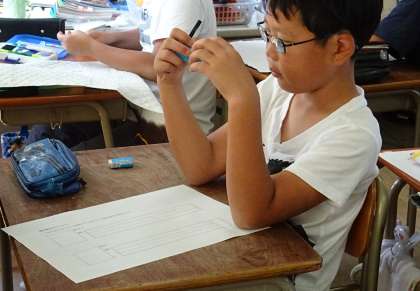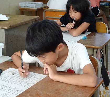 じっと考え、今にも新しい漢字がひらめきそうな子。
