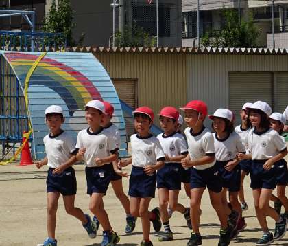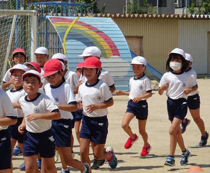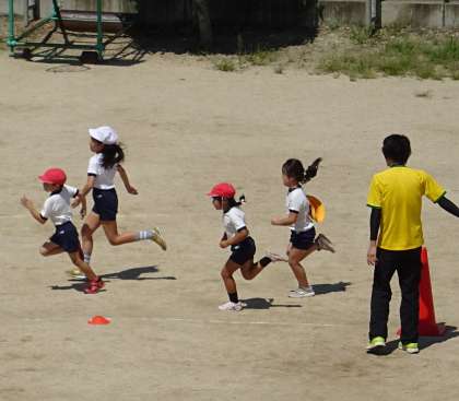 1年生の時は、運動場の真ん中を一直線に走りましたが、2年生になると、トラックを約半周走ります。
