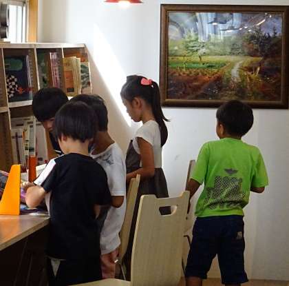 静かに友だちと並んで座り、いつの間にか本の世界へと入っていきます。