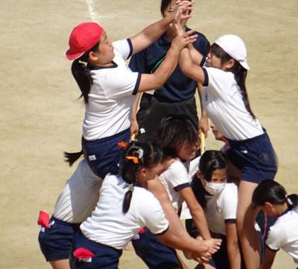 赤の騎馬軍と白の騎馬軍が、間合いをとりながらにらみ合います。