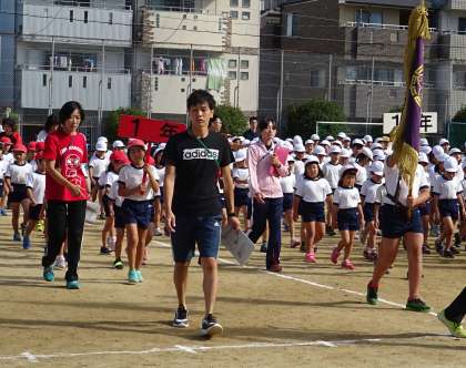 この後、開会式での校歌斉唱や準備体操、応援合戦の場所確認などが行なわれました。