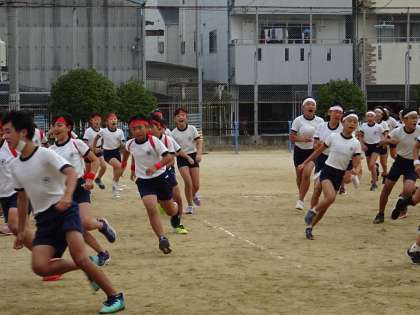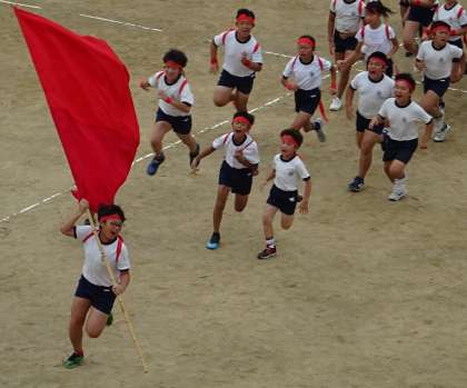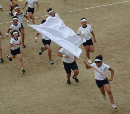 旗を先頭に、雄叫びをあげながら疾風のごとく運動場を駆けまわります。