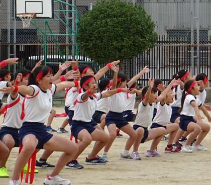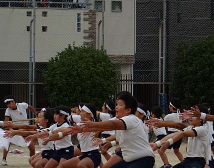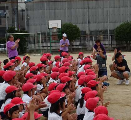 初めて見る応援団の迫力ある応援合戦に、全校児童から大きな拍手がわき起こりました。