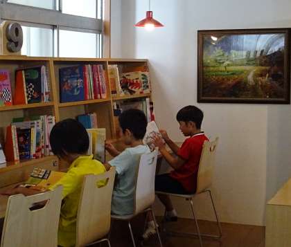 図書室中央にあるツリーには、図書委員会の児童が様々なジャンルの中から選んだ「おすすめしたい本」が紹介されています。
