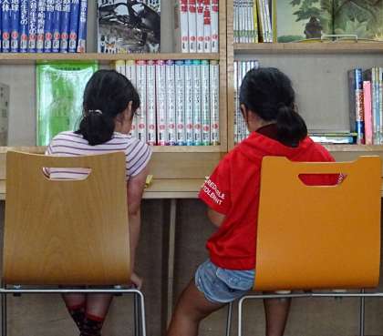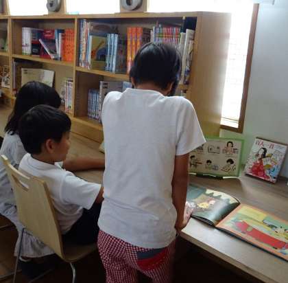 読書だけでなく、子どもたちの調べ学習においても、図書室は大いに役立っています。