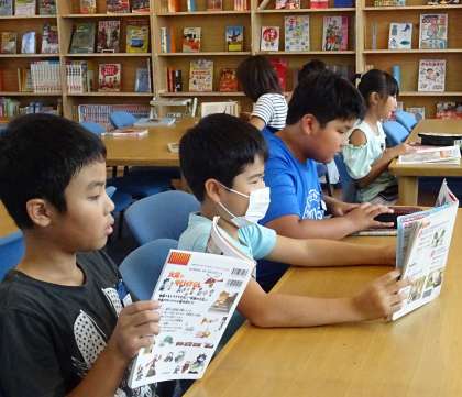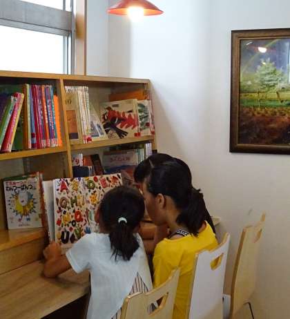 図書室には、子どもたちが読書している様子を温かく見守るハト時計があります。