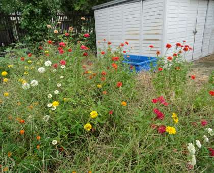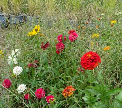 1年生のエリアには、色とりどりのマリーゴールドが咲いていました。
