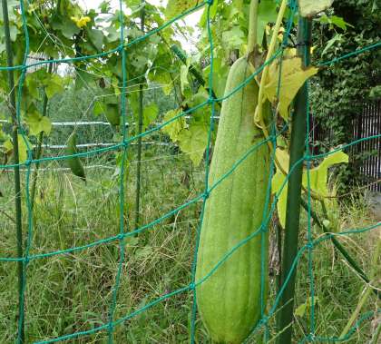 おとなりの4年生のエリアでは、大きなへちまが実っていました。