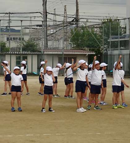 3年生と4年生が、団体演技「Let’s dance」を練習している様子です。