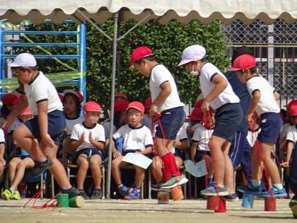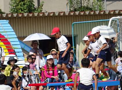 運動会のために、管理作業員さんが手作りで平均台を準備してくれました。