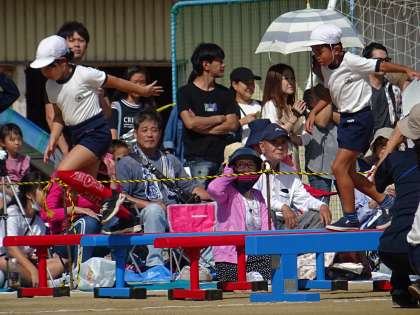 プログラム3番、3年生による個人走「野を越え 山越え」の様子です。