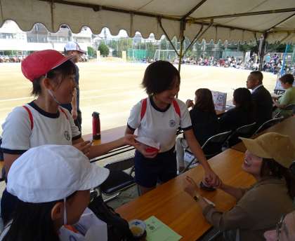 応援に来てくれた産休中の先生を見つけて、嬉しそうにあいさつに来る子どもたち。