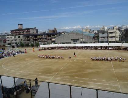 プログラム9番、5年生による団体競技「一致団結」の様子です。