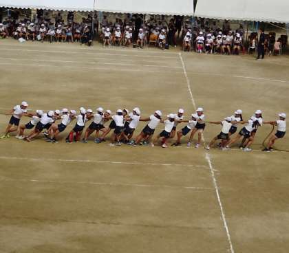 5年生は、この綱引き競技でも、リレーと同じようにチームで作戦を立てながら練習してきました。