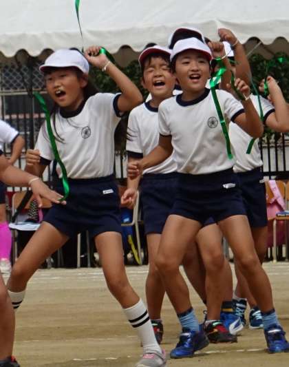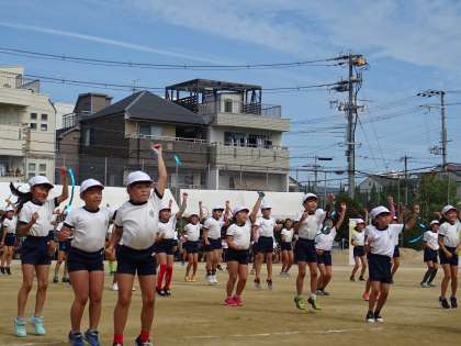 プログラム10番、3年生と4年生による団体演技「Let's dance!」の様子です。