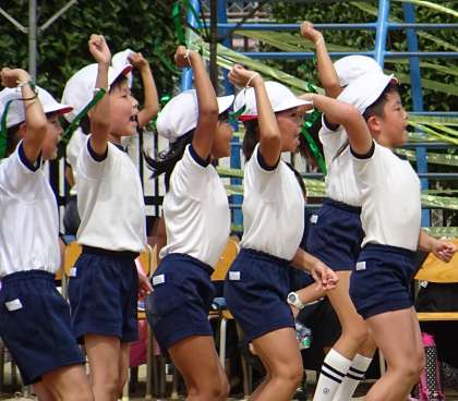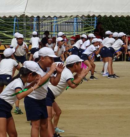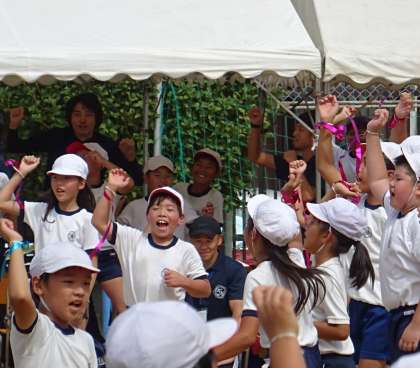 おや、よく見ると、奥のテントの下でお調子者の先生たちも踊っていますね。