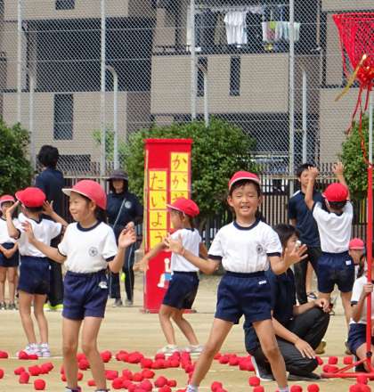 すっかり加美東小学校の名物となった「ダンシング玉入れ」は、可愛いダンスから始まります。