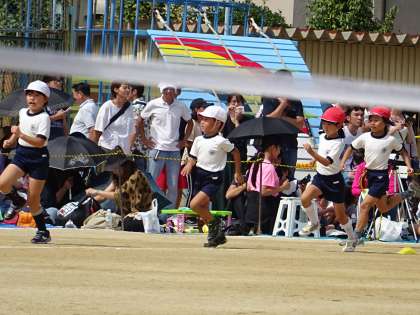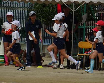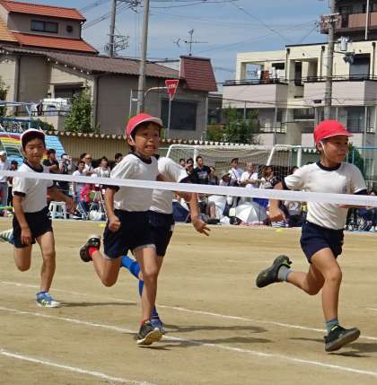カーブでスピードを落とさないように、体を少し内側に傾けながら走ります。