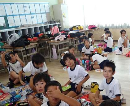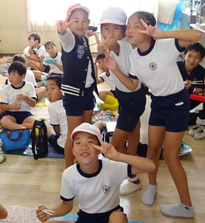 応援団の子どもたち、しっかり食べてパワー全開で応援ヨロシク!