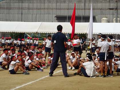 ずっと指導してくれた先生から最後の言葉をかけてもらい、応援隊形で構えます。