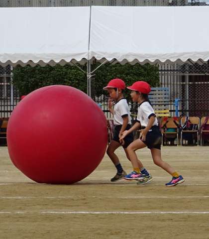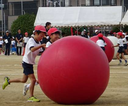 前のチームからタッチを受けると、一直線に前へ転がします。