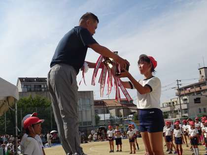 勝った白組の子どもたちも、負けた赤組の子どもたちも、「心を一つに協力しあおう!」という運動会のめあてを達成できたのではないでしょうか。