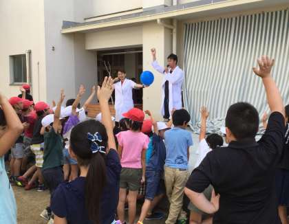 大きくふくらんだ風船が登場すると、子どもたちは大興奮です。
