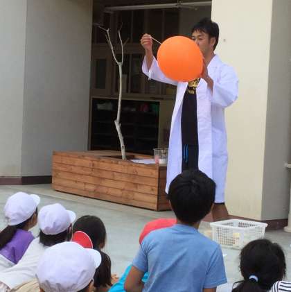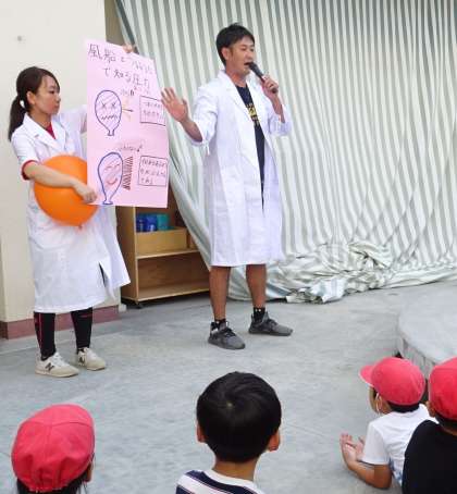 不思議な顔をしている子どもたちに、大きなイラストで解説します。
