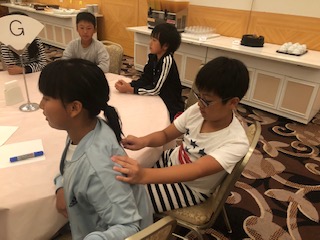 一つ目のゲームは、背中に書いた文字を当てるゲームです!