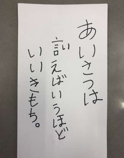3年生の児童が、自分で考えた「あいさつ標語」を職員室に持ってきてくれました。