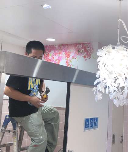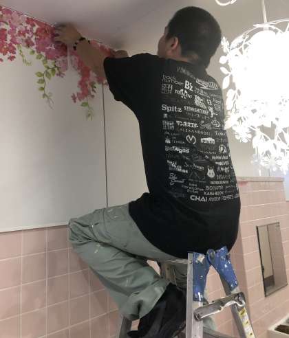 照明設備は外部の業者に委託しましたが、ペンキ塗りや壁紙の仕上げ作業は、すべて管理作業員さんの手作業です。